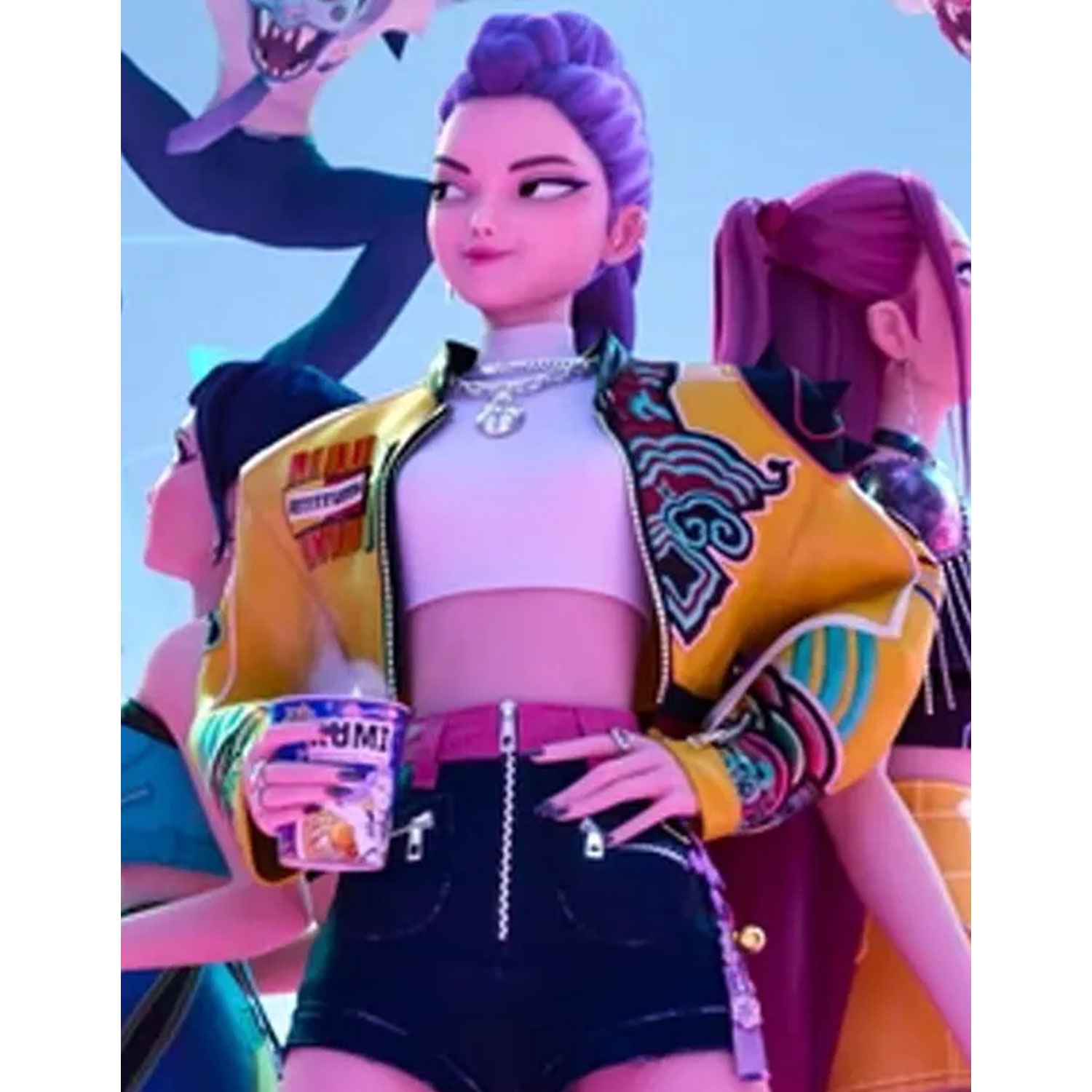 Rumi KPop Demon Hunters 2025 Cropped Yellow Leather Moto Jacket